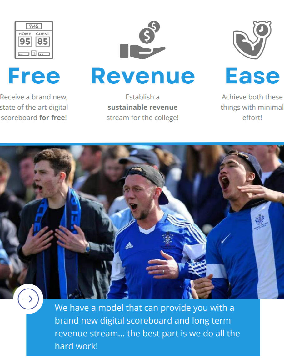 At Easy ads we partner with local businesses to provide free sporting equipment to clubs and highshcools. We specialise in unlocking accessibility to state of the art digital scoreboards. Our scoreboards take the atmosphere of your sporting events to the next level.And we don't stop there. Easy ad's also uses their expertise to buy brand new sport gear for high school and clubs. Whatever your sporting requirements, we can design a project that brings your equipment needs to life.